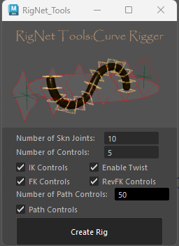 Curve Rigger (RigNet Tools) for Maya with python 3